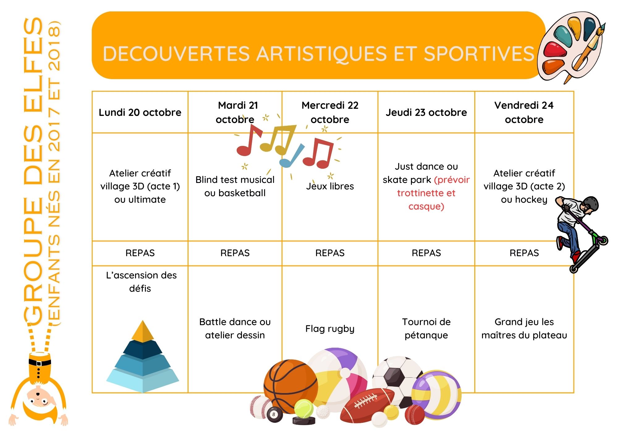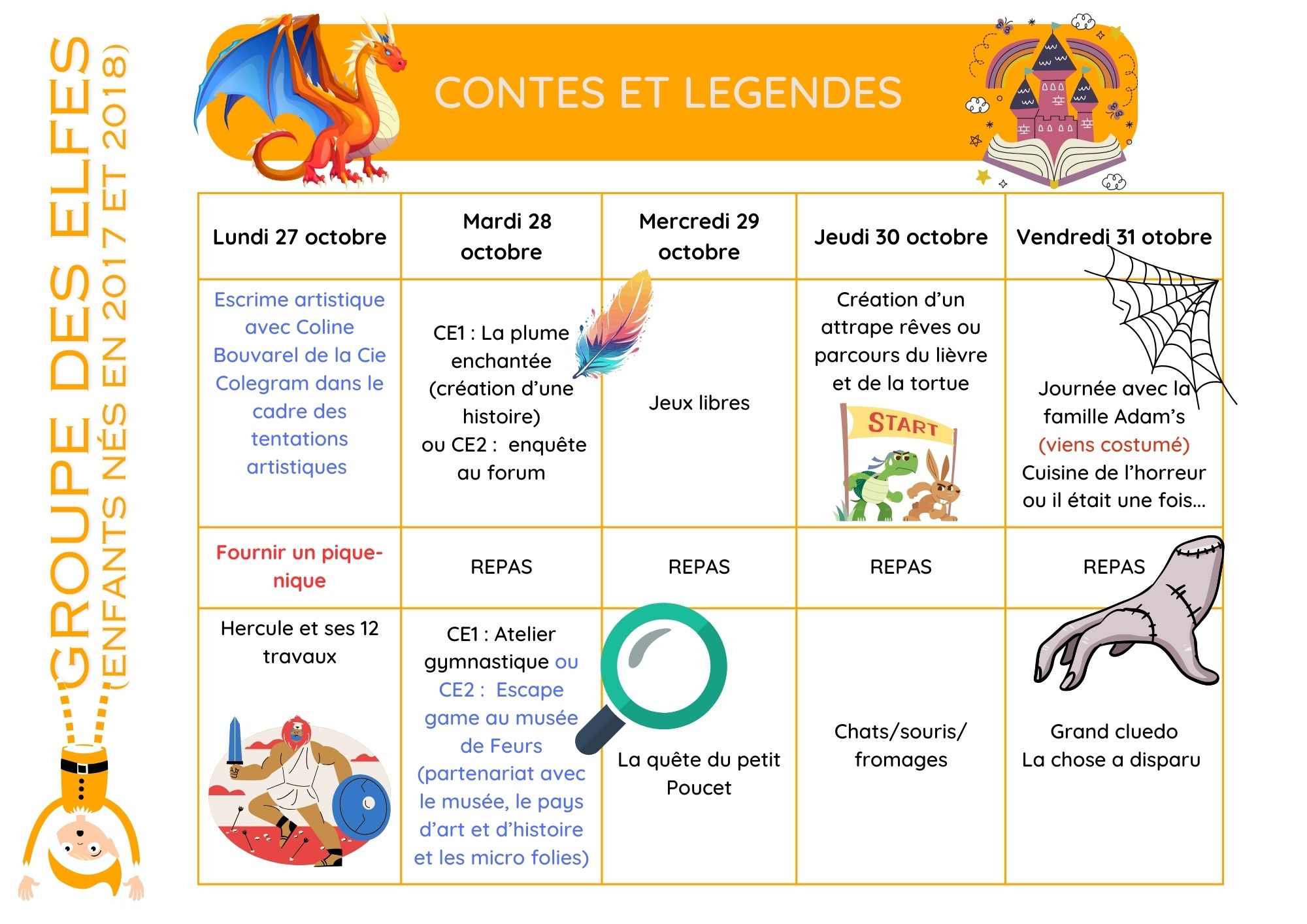 -Programme des Elfes (né.e en 2017 et 2018) : Semaine 1 Semaine 2